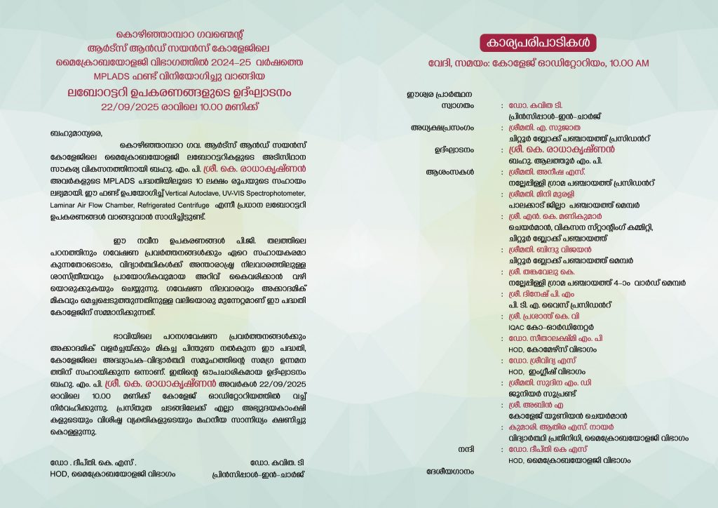 Inaugral Function of ‘New Microbiology Lab Equipments ‘ received from Hon.Sri.K.